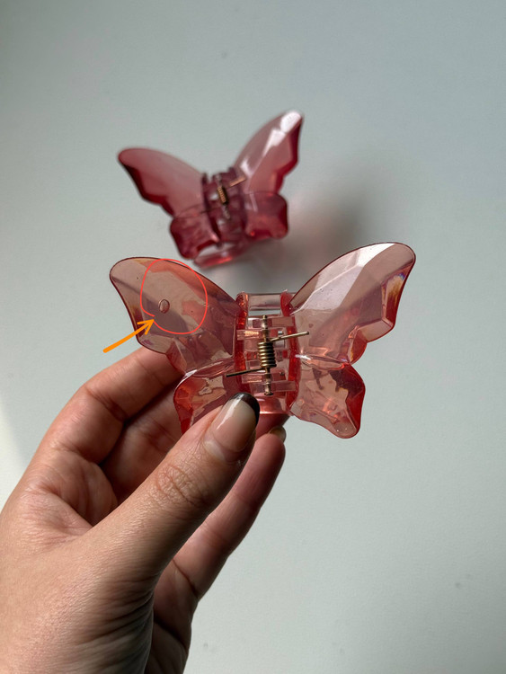 بدنه و دندانه های کلیپس پروانه کاملا سالم بوده و تنها روی بال ها ایراد جزیی وجود دارد.